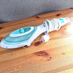 Ett antikt strykjärn med trä handtag Perfekt för samlare eller som en dekorativ detalj i hemmet.
