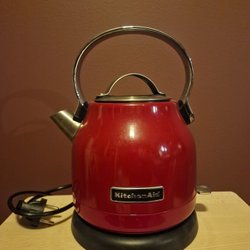 Säljer en vattenkokare. Den är svart med silverfärgad lock. Perfekt för att snabbt koka upp vatten till te eller kaffe.