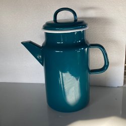 Kockums kanna 14cm, 1 liter i retrostil med ljusgul färg och mintgrön detalj.