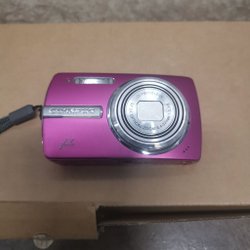 Kompakt digitalkamera från Lumix. Kameran har en utfällbar skärm och en handledsrem. Undersidan av kameran har en gänga för stativfäste. På sidan finns portar för anslutning.