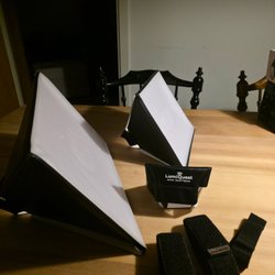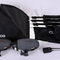 - Ett brett urval av ljusformare, inklusive paraplyer, reflektorer och diffusorer