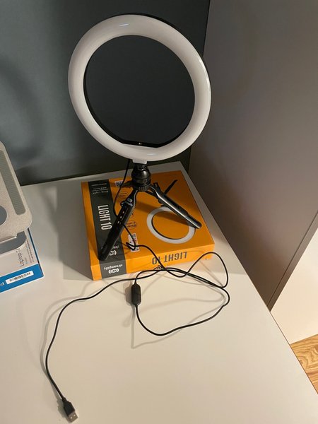 Streamplify Light 10 ringlampa med stativ. Lampan har tre temperaturlägen och två monteringsalternativ. Den är designad med en smal profil.
