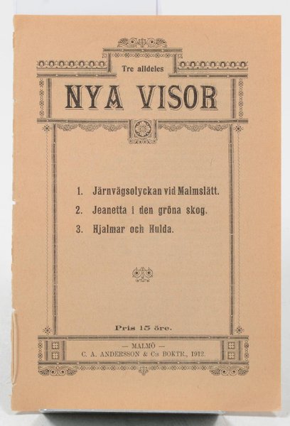 1. Järnvägsolyckan vid Malmslätt., 2. Jeanetta i den gröna skog., 3. Hjalmar och Hulda.