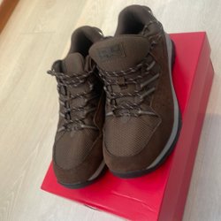 Den är vändbar, neongula sidan har några fläckar på framsidan, lila sidan är fin. Den har en regnluva i kragen.
