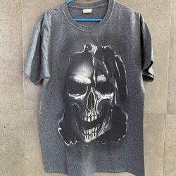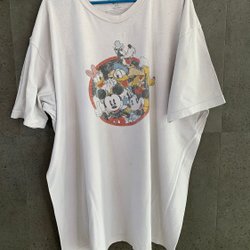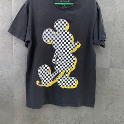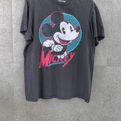 Spektakulär Fiorucci T-shirt med japanska tecken, färgsprakande mönster och stor Mickey Mouse på baksidan. Ett unikt samlarplagg med kultstatus som fångar både Disney-magi och italiensk 80-talsenergi.