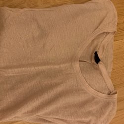 Säljer en ljusrosa t-shirt med v-ringning och korta ärmar. T-shirten har knappar längs hela ryggen och är gjord i ett tunt, mjukt bomullstyg. Perfekt för dig som gillar en enkel men ändå snygg stil.