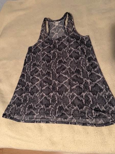 Ett ärmlöst linne med ett unikt ormskinnsmönster. Linnet har en racerback-design.