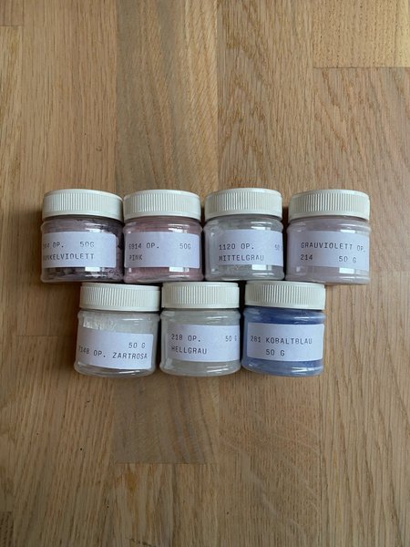 7 st olika färger emaljer till silversmide