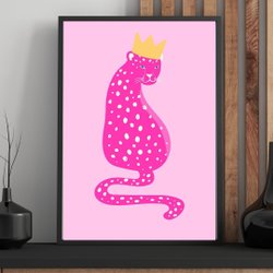 Poster med en tiger omgiven av gröna blad mot en rosa bakgrund. Tigern har orange, vita och svarta ränder. Bladen har inslag av guld.