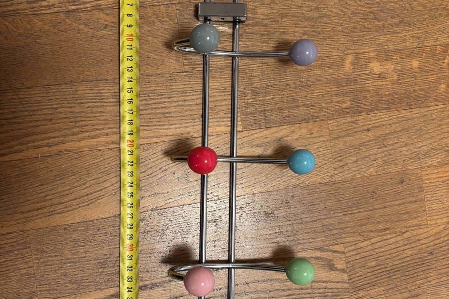 Vägghängare med en lekfull design. Den har en stomme i metall och tio färgglada kulor i olika nyanser. Perfekt för att hänga upp kläder, väskor eller accessoarer i hallen, barnrummet eller sovrummet.