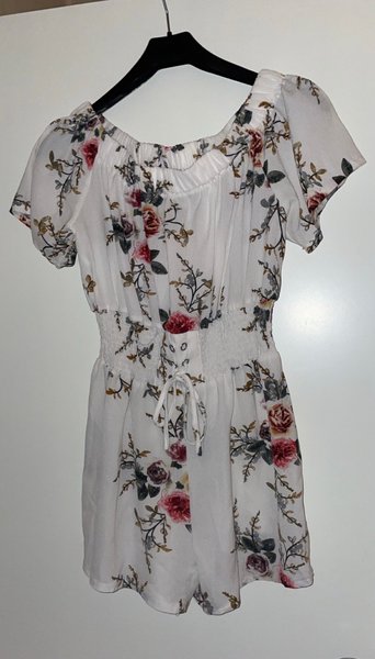 Vit playsuit med blommigt mönster.