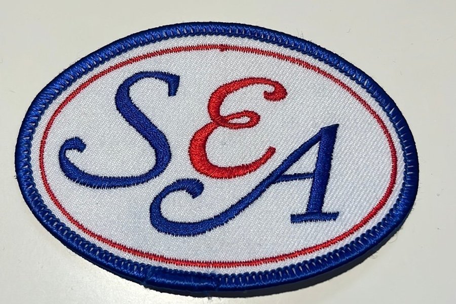 Detta är ett broderat tygmärke med logotypen för Sterling European Airlines.