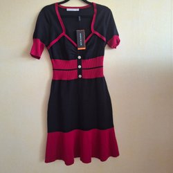 Klänning med korta ärmar och rund halsringning. Klänningen har ett genombrutet spetsmönster över hela plagget.