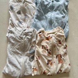I fint använt skick. OBSERVERA att den blå ribbade pyjamasen har en liten fläck. Har ej testat att fläckbehandla.