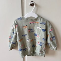 Söt body med långa ärmar och ett lekfullt mönster av moln och regnbågar. Bodyn är i en ljus nyans och har tryck över hela plagget. Två olika storlekar på knäppen i grenen