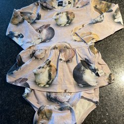 Färgglad body med långa ärmar. Bodyn har ett mönster med rådjur och blommor i olika färger, guldtråd på vissa ställen. Jättefin!