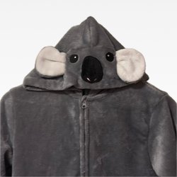 Rosa onesie med huva som har ett axolotl-ansikte med broderade ögon och ett leende. Huvan har även axolotl-fenor på sidorna.