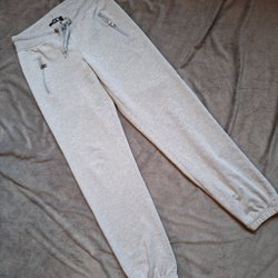 Ett par bekväma sweatpants med resår i midjan och muddar vid anklarna. Byxorna har en avslappnad passform.