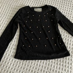 Eleganta svarta byxor med utsvängda ben. Byxorna har en klassisk design med fickor fram och bak. Storlek 152 i bra skick.