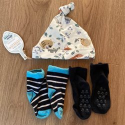 En liten fläck finns, se bild tre. Har inte försökt med fläckborttagningsmedel. Mjuka och sköna, lite svagt ytludd finns. En bra baby byxa. Vikt 47 gram
