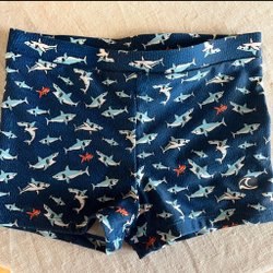 Rosa fleecebyxor med vita prickar. Byxorna har resår i midjan och muddar vid bensluten. Storlek 92.