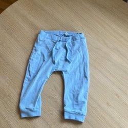 Blå byxor med resår i midjan och benslut. Byxorna har fickor på benen.