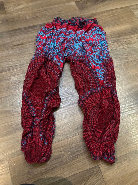 Röd, turkos byxor