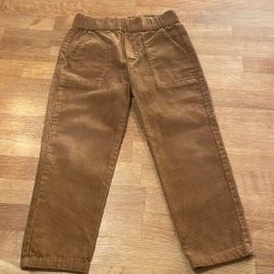 Bruna byxor med resår i midjan och muddar nedtill. Dekorativa björnar på knäna.