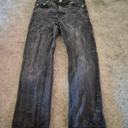 Beiga byxor med ställbar resår i midjan och fickor fram och bak. Storlek 158.
