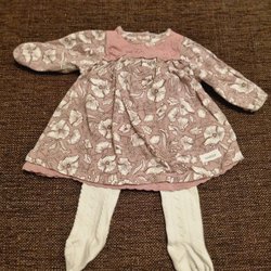 Ett sött set från Newbie bestående av en blommig tunika med lång ärm och vita leggings med en dekorativ rosett.