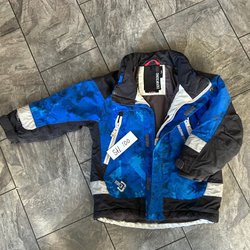 Ett paket med barnkläder. Inkluderar en mörkblå tröja med en röd bil på, en svart långärmad tröja med en segelbåt, en ljusblå långärmad tröja med bilar, en vinröd hoodie med text, ett par grå mjukisbyxor, ett par mörkblå mjukisbyxor och en grön pyjamas med dragkedja.strl 86/92