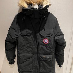 Ett Houdini set med en mörkblå fleecejacka med huva, mörkblå byxor och en mörkblå mössa. Jackan har en dragkedja fram och fickor med dragkedja på sidorna. Fint skick och väl omhändertaget.