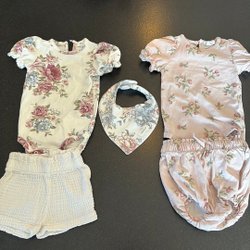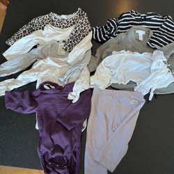 Ett paket med babykläder i storlek 68. Innehåller bodys, tröjor och ett set med tröja och byxor. Blandade märken som H&M, Lindex och Polarn O. Pyret.