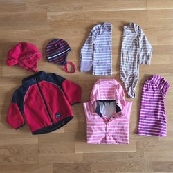 2byxor och två tröjor, samt en pyjamas med byxor och tröja.