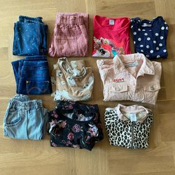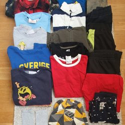 Detta är ett klädpaket för barn som innehåller en blandning av olika stilar och färger. Paketet inkluderar t-shirts, kortärmade skjortor, shorts och en keps. Perfekt för att skapa en mångsidig garderob för ditt barn.
