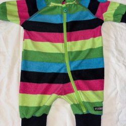 Jumpsuitsen/pyjamaserna är från Tiny One den gröna och den rosa Pippi. Båda har lite ytludd/nopprigt. Dom innehåller 100% bomull.