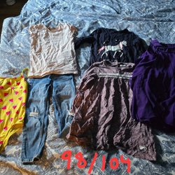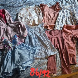 Ett set med kläder i olika nyanser av lila och rött. Inkluderar byxor, en body och tröjor med lång ärm från Newbie, H&M och Lindex. I ett bra skick.
