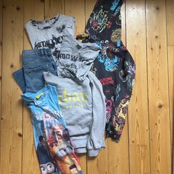Klädpaket i storlek 146-152. Blandade märken Levis, Adidas, Nike, molo, soc, h&m, kappahl osv.. Jens, träningskläder, långärmade och kortärmade tröjor, ”finbyxor”, klänning.
