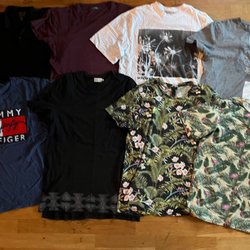 Detta är ett paket med barnkläder som innehåller en beige mössa H&M, en ljusblå skjorta med stjärnor H&M, en pyjamas med Cars, bilar, ett par jeans med resår i midjan Lab industries, en mörkblå jacka med djurmönster vinterjacka Lindex, ett par vantar och en sydväst fodrade Nordbjörn en grön regnjacka Didrikson 98-104. Kan ha missat någon fläck