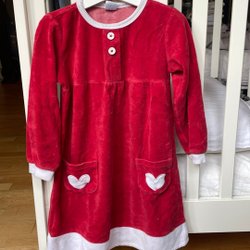 Ett paket med två långärmade klänningar storlek 122 . En rosa klänning med volangdetaljer och en beige klänning med ett tryck av figurer. Finns små flackar, se bilder. Katt finns i vårt rökfria hem
