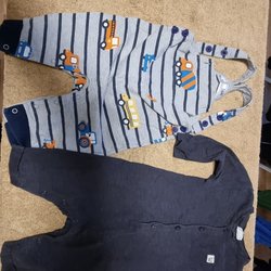 Kläder från Polarn o Pyret, HM och overall från Lundmyr sl 6-12 månader.