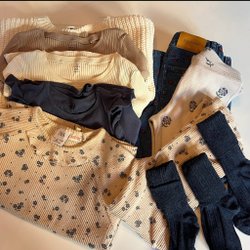 Ett fint set med två långärmade tröjor och tre par mjukisbyxor med förstärkta knä.