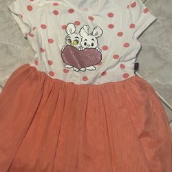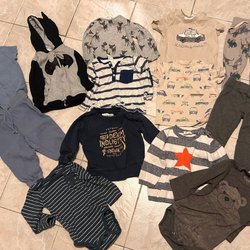 Detta är ett klädpaket med blandade barnkläder. I paketet finns bland annat klänningar, tröjor, byxor och hoodies. Det finns kläder med tryck och mönster, samt enfärgade plagg. Vissa har obehandlade fläckar. Jeansklänningen har väldigt mycket fläckar… främst dom 4 sista bilderna som har fläckar. perfekta kläder för förskolan.