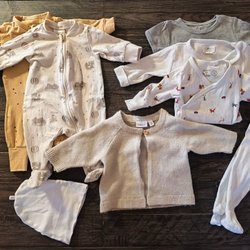 Ett set med babykläder. Märken som Newbie och Kappahl bland annat.