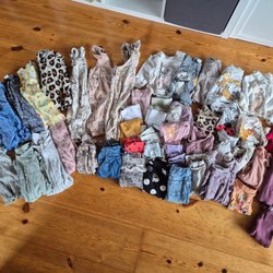 2 set med volang, T-shirtar, en jumpsuit, byxor, babblarna pyjamas. Vissa plagg kan vara mer förskoleskick.