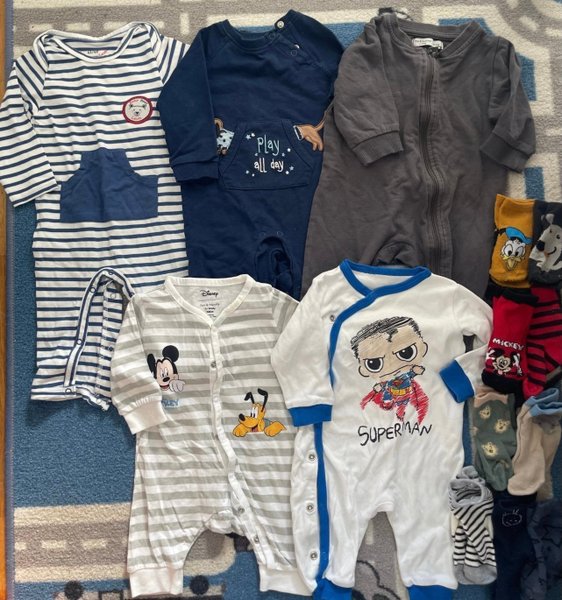 5st pyjamas , ingår ett antal par strumpor med olika mönster och färger.