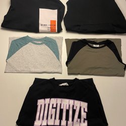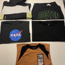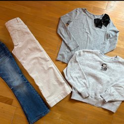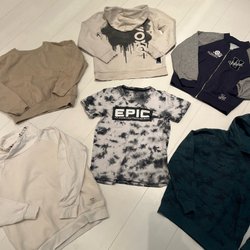 Två t-shirts, en långärmad T-shirt och en luvtröja. Finns någon liten fläck, se bild.