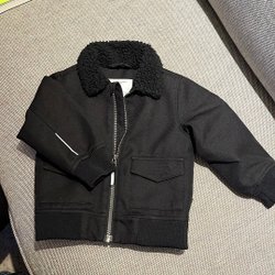 Ett paket med barnkläder i olika storlekar och stilar. Inkluderar byxor, tröjor, klänningar och en hatt.