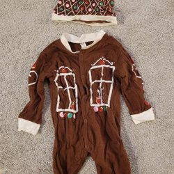 Detta är ett set med babykläder. Setet innehåller en vit body med stjärnor, en randig body med en figur på, en grå tröja och en grårandig pyjamas med dragkedja.