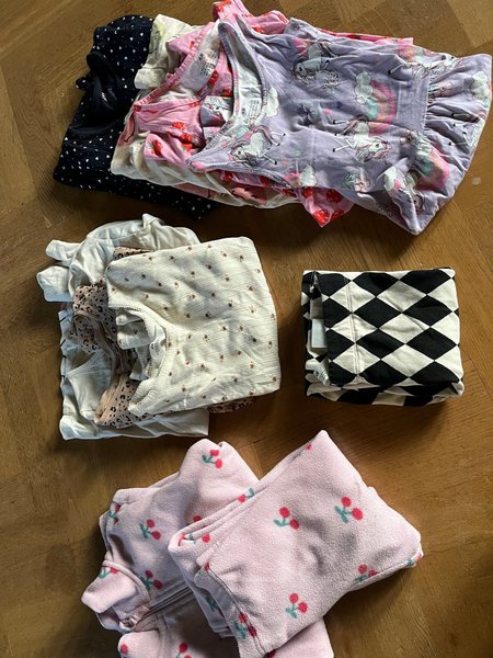 1 fleece kit, 1 par byxor, 2 långärmade, 1 T-shirt, 4 klänningar . Storlek 134/140